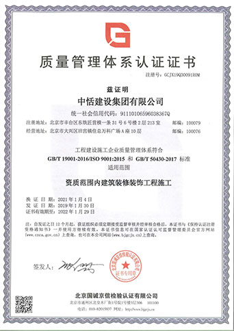 中恬建设集团有限公司成立于2012年,具有独立的法人资格,公司注册资金10080万元。公司具有住房和城乡建设部核发的工程设计建筑装饰工程专项甲级设计资质;具有北京市住房和城乡建设委员会核发的建筑工程施工总承包叁级、建筑装饰装修专业承包壹级、建筑幕墙工程专业承包贰级、消防设施工程专业承包贰级、电子与智能化工程专业承包贰级、防水防腐保温工程专业承包贰级、环保工程专业承包叁级、建筑机电安装工程专业承包叁级、特种工程(结构补强)专业承包不分等级、市政公用工程施工总承包叁级等建筑业企业资质。 …